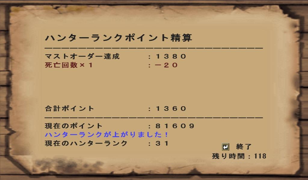 ハンマーソロにてHR30試験・シェンガオレン撃退に成功しました。